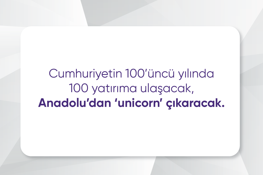 Cumhuriyetin 100’üncü yılında 100 yatırıma ulaşacak, Anadolu’dan ‘unicorn’ çıkaracak